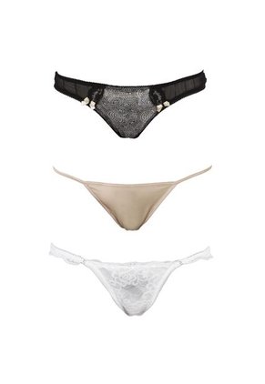 Trio Panty Hilo Mujer Besame Negro Blanco Beige