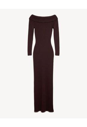 Vestido largo con escote off shoulder que deja los hombros al descubierto, manga larga ajustada y silueta ceñida que acompaña el cuerpo de forma natural, con acabado tejido de apariencia uniforme y largo extendido que aporta una caída continua y estilizada, ideal para planes de noche o eventos especiales.Especificaciones:Color: MoradoComposición: 50% Viscosa 28% Poliéster 22% PoliamidaTipo de manga: Manga LargaFit: AjustadoInstrucciones de Lavado:No dejar en remojoLavar en agua fría separadamenteNo usar blanqueadorNo retorcerSecar a la SombraPlancha tibiaHecho en ChinaGarantía: 60 Días.