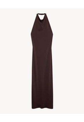 Vestido largo con escote halter y diseño sin mangas que estiliza la parte superior, silueta recta con caída fluida y estructura limpia que acompaña el movimiento, ofreciendo un look equilibrado y ligero, ideal para eventos formales o planes especiales donde se busca una apariencia pulida.Especificaciones:Color: CaféComposición: 100% PoliésterTipo de manga: Sin MangasFit: FluidosInstrucciones de Lavado:No dejar en remojoLavar en agua fría separadamenteNo usar blanqueadorNo retorcerSecar a la SombraPlancha tibiaHecho en ColombiaGarantía: 60 Días.