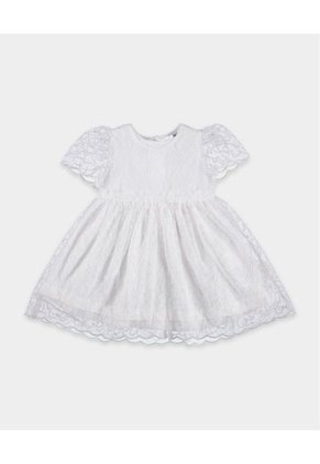 Hermoso Vestido de Bebe niña color blanco diseño 2 en 1 vestido interior cuello redondo sin manga corte en cintura sistema de cierre invisible en espalda , prenda superior elaborado en tull bordado diseño de mariposa hilo a tono, mangas y ruedo borado festoneado a tono una prenda única ideal para ocasiones especiales