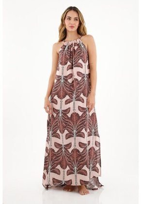 ¡Un estampado para nunca olvidar! Imagina tener este vestido en tu clóset y poder ser la protagonista de tus momentos más especiales. Características- Color: rosado - Estampado - Largo - Cuello halter - Aberturas en costados - Tiras trenzadas - Material: Algodón 100% Sobre el fit Con esta silueta obtendrás un estilo sofisticado, mientras sigues disfrutando cómodamente tus planes de fin de semana.