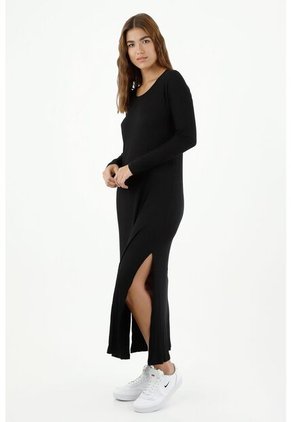 Vestido De Mujer, Silueta Ajustada De Diseño Midi, Cuello Redondo Manga Larga, Color Negro