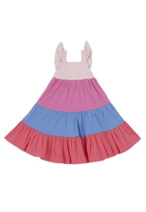 vestido de Niña diseñado con cuatro niveles multi color que le permiten a la prenda un mayor volumen girable. dando un toque de comodidad y el ajuste seguro, arandela en hombros a tono, elástico en la parte posterior permite máxima capacidad de movimiento.