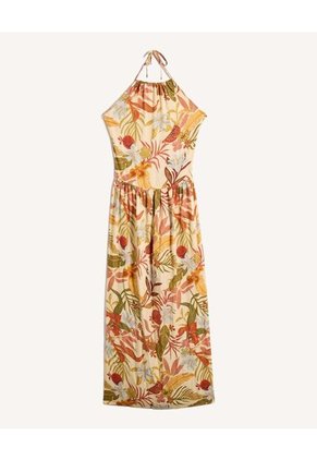 Vestido Halter Estampado Tropical Para Mujer Naranja Seven Seven