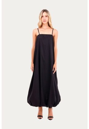 Este vestido largo destaca por su silueta suelta y sofisticada. Con un diseño minimalista de tirantes delgados y escote recto, ofrece una caída fluida que proporciona comodidad sin perder elegancia.