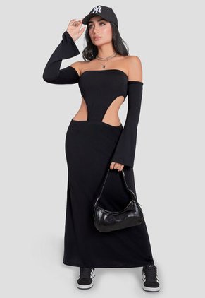 Vestido De Punto Milano De Doble Capa Mujer Negro Calvin Klein