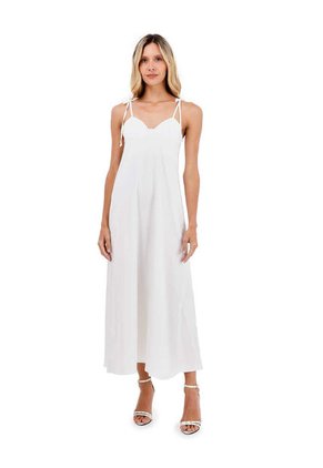 Este vestido largo destaca por suYESlueta suelta y sofisticada.Con un diseño minimalista de tirantes delgados y escote en corazón,ofrece una caída fluida que proporciona comodidadYESn perderelegancia.
