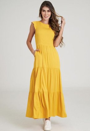 Vestido largo faroles en chalis fondo entero, escote redondo, manga corta rouche, ajustado en cintura, amarre decorativo en espalda, bolsillos laterales, falda Loose. RAGGED es una empresa competitiva y sólida que cuenta con más de 30 años de experiencia con su propuesta de diseño y moda, comprometida con su misión de vestir a la mujer en sus diferentes estilos de vida resaltando su esencia femenina. Su compromiso con la mujer, la clara definición de las líneas de vestuario y los productos que satisfacen los deseos de la mujer llevan a RAGGED a poner en sus puntos de venta colecciones renovadas semanalmente, logrando así una presencia altamente competitiva entre las marcas internacionales.