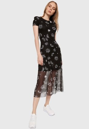 Vestido Negro-Blanco Desigual • Género: Femenino • Tipo de Producto: Vestido • Color: Negro-Blanco • Actividad: Casual • Material: Elastano-Viscosa • Cuidados Especiales: Lavarse a máquina, en agua fría, lavar por separado y no usar cloro. • Fit: Custom fit • Tipo de Cuello: Redondo • Tipo de Bota: Tipo Bota • Tipo de Manga: Corta • Medida Largo Total: 80cm • Medida Torso/Busto: 70cm • Medida Cintura: 68cm • Origen: Producto Importado • Detalle Especial: Diferente, divertido y Desigual. Un vestido formal o informal dependiendo de cómo lo combines. Vestido unicolor con detalles en blanco, cuello redondo, manga corta, parte externa tipo tull estampado. • Recomendación: Puedes probártelo antes de solicitar el cambio. • Talla: XS
