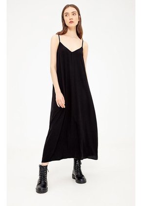 Vestido Negro Gef Lori Con Gef, la comodidad no se improvisa. Este vestido largo de tiras delgadas, es una opción indiscutible cuando deseas causar las mejores impresiones. Sus básicos detalles lo hacen perfecto para que al combinarlo, todo resulte más sencillo Especificaciones:• Fit: Regular Fit: Es recto, de los más cómodos, amplio y no va ceñido al cuerpo.
