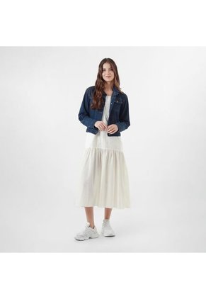 VESTIDO DE TIRAS CON TELA EN COMBINADO CON ESCOTE RECTO CON ELASTICO EN ESCOTE ESPALDA