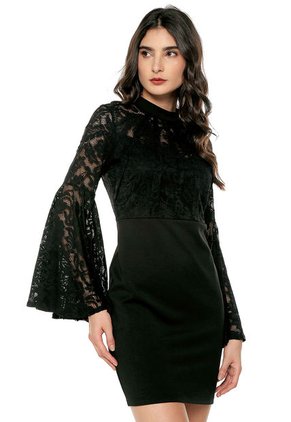 Vestido Negro Paris District • Género: Femenino • Tipo de Producto: Vestido • Color: Negro • Actividad: Casual • Tipo de Cierre: Cremallera Posterior • Material: Poliéster • Cuidados Especiales: No usar blanqueador • Fit: Regular Fit • Tipo de Cuello: Redondo • Tipo de Manga: Larga • Medida Largo Total: 67cm • Medida Torso/Busto: 84cm • Medida Cintura: 76cm • Origen: Producto Importado • Detalle Especial: Vestido casual a un color con texturas semitransparente y detalles tipo encaje al tacto en relieve. • Recomendación: Puedes probártelo antes de solicitar el cambio. • Talla: S