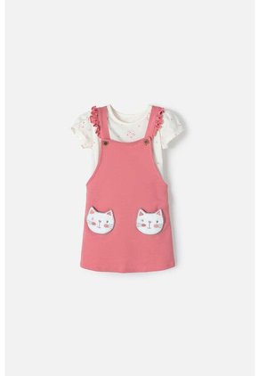 Vestido Tipo Jardinera De LittleMic Rosa Viejo Y Marfil Para Niña 2T A 5T 3T