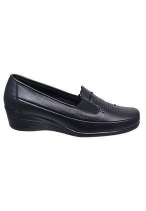 ZAPATO MOCASÍN CUERO TACÓN CORRIDO PARA MUJERHecho en Colombia.Ref: 537LUColor: NegroMaterial: CueroPlantilla: AnatómicaForro: TextilCapellada: CueroAjuste: N/ASuela: TRCaracterísticas adicionales: N/AAltura: 3 1/2100% Hecho en Colombia. Apoye la industria nacional, compre colombiano.Descripción:Diseñado para acompañar el ritmo diario con comodidad y soporte, este zapato tipo mocasín es una opción práctica y elegante para mujeres que priorizan el confort sin dejar de verse bien. Su diseño cerrado y de líneas suaves lo convierte en un calzado ideal para jornadas largas, trabajo continuo o actividades que requieren estabilidad al caminar.Está elaborado en cuero natural color negro, con un acabado liso y flexible que se adapta progresivamente a la forma del pie, ofreciendo una sensación confortable desde el primer uso. La capellada incorpora discretos detalles de costura y un diseño sobrio en el empeine que aporta carácter sin recargar el estilo, manteniendo una apariencia limpia y profesional.La punta de forma ligeramente redondeada permite mayor libertad en la zona de los dedos, ayudando a reducir la presión y favoreciendo una pisada más cómoda. Su tacón corrido de 3 1/2 cm, integrado a la suela, proporciona una elevación uniforme que mejora la postura corporal y distribuye el peso de manera equilibrada, disminuyendo el impacto al caminar.La suela TR, resistente y flexible, ofrece buen agarre y durabilidad, mientras que su diseño continuo brinda estabilidad adicional en cada paso. En el interior, la plantilla anatómica contribuye a una correcta alineación del pie, y el forro textil aporta suavidad y transpirabilidad durante todo el día.Gracias a su diseño tipo slip-on, es fácil de calzar y se ajusta de forma práctica al pie, convirtiéndose en una excelente alternativa para uso diario, laboral o institucional.Disponible en tallas de la 34 a la 40.Se recomienda consultar la guía de tallas para una elección más precisa.Producto 100% Hecho en Colombia.Compra nacional y apoya el talento colombiano